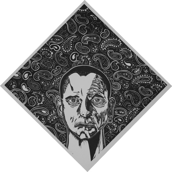 Self-Portrait with Paisley, lino-cut print, 12” x 12”, 2013