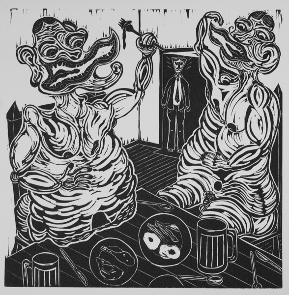 Below are selected images from The Ulysses Project. All images are 12″ x 12″ linocut relief prints completed in 2013.